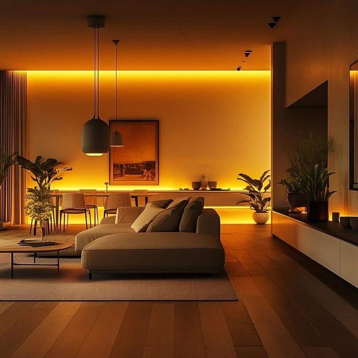 No espaço mais importante para o descanso, priorize luminárias ou fitas de LED com luz amarela indireta. Sensores de movimento são uma excelente opção para evitar exposição à luz branca durante a noite — como aquele “flash” que nos acorda completamente ao irmos ao banheiro. Esses sensores garantem que a
